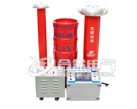 串聯(lián)諧振構(gòu)成:變頻源,勵(lì)磁變,電抗器,分壓器,電容器,控制箱
