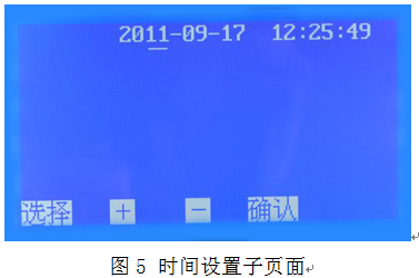 5、在圖2頁面下,按 選擇 鍵移動光標(biāo)√ 至?xí)r間設(shè)置處,按 確認 鍵即可進入時間設(shè)置子頁面(圖5)。