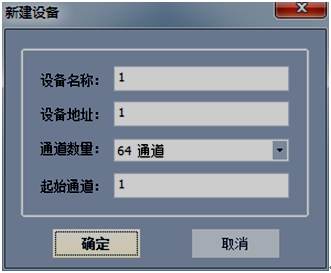 在“設(shè)備管理”區(qū)域內(nèi)點擊鼠標右鍵,選中“添加設(shè)備”彈出如下圖2-3新建設(shè)備對話框,設(shè)備名稱可自命名,設(shè)備地址為下位機地址(可在下位機系統(tǒng)設(shè)置界面中查詢),根據(jù)需要選擇相應(yīng)的通道數(shù)目和起始通道(默認起始通道為1)。當通道數(shù)目大于64或者需要將通道分成不同的類,可以各類通道掛在不同的設(shè)備上。如前8個通道測量溫度,后8個通道測量濕度并且想把他們以不同的窗口顯示出來,可以按一下操作進行:1)建立一個新的8個通道的設(shè)備,設(shè)備名稱->設(shè)備地址為1 ->通道數(shù)量8通道->起始通道1;2)再建立一個8通道的設(shè)備,設(shè)備名稱->設(shè)備地址為1 ->通道數(shù)量8通道->起始通道9。以上是對于同一臺儀器不同通道的操作。