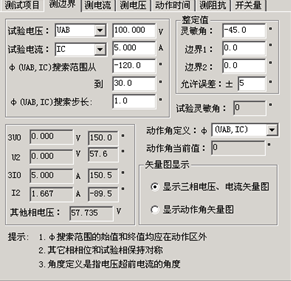 微機繼電保護測試儀的測邊界作者:合眾電氣發布時間:2021-08-16瀏覽量:4087 次字體顯示:【大】【中】【小】 微機繼電保護測試儀的測邊界。 測邊界 自動測試出方向性保護的兩個動作邊界,并且自動計算出最大靈敏角。在“顯示動作角矢量圖”的顯示方式下,從主界面右側的圖中可以很直觀地觀察到兩條邊界線和最大靈敏線。上一篇: 微機繼電保護測試儀試驗參量下一篇: 微機繼電保護測試儀測試項目的界面說明