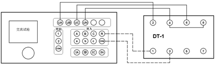 在微機(jī)繼電保護(hù)測(cè)試儀交流試驗(yàn)中,設(shè)定Ua、Uc輸出額定電壓接入兩線圈,繼電器不動(dòng)作,但斷開任一線圈繼電器即動(dòng)作,說明2、6為同極性端子,否則2、4為同極性端子。