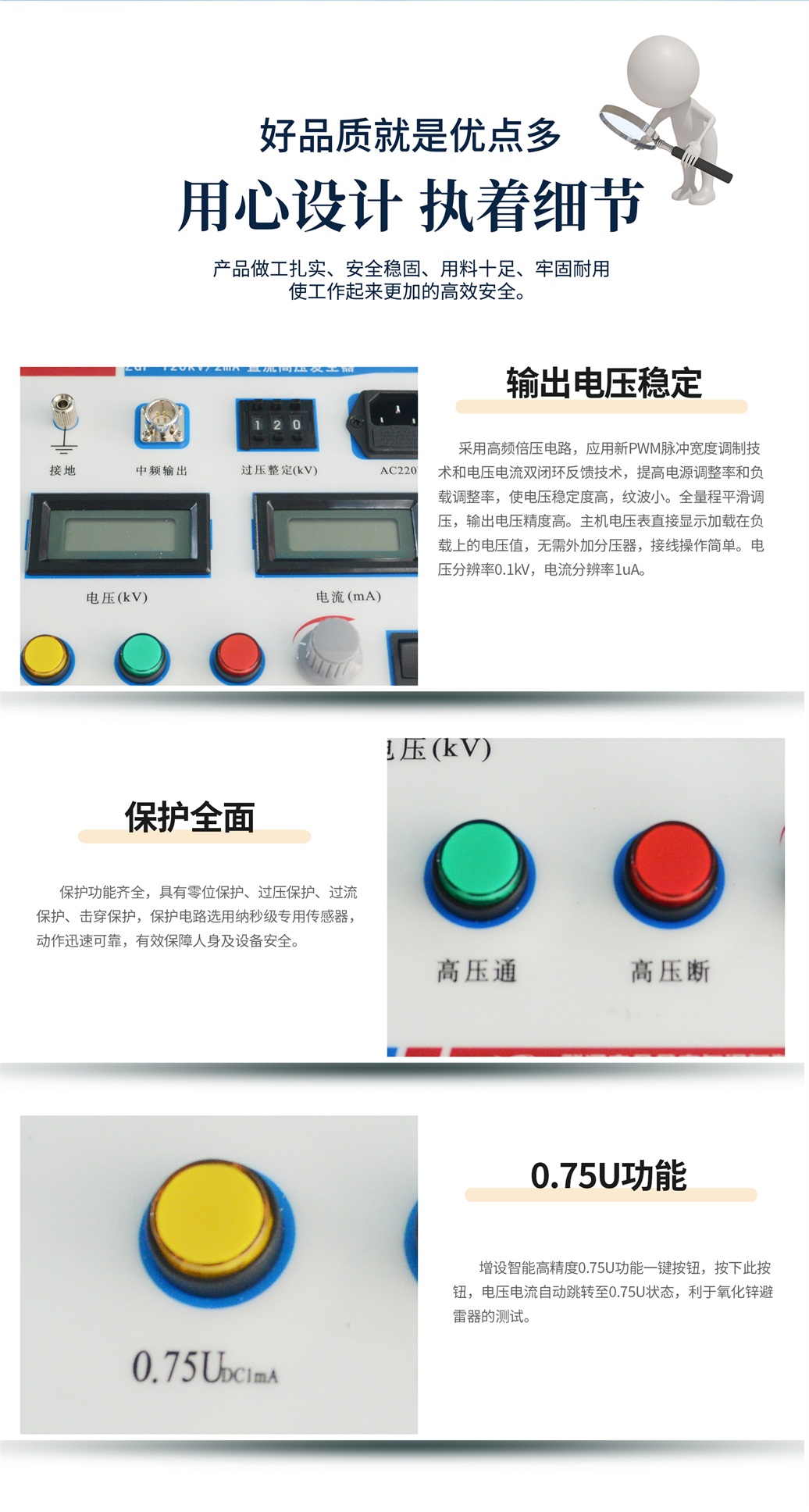 (5)增設高精度0.75UDC1mA功能,為做氧化鋅避雷器測量帶來極大的方便。