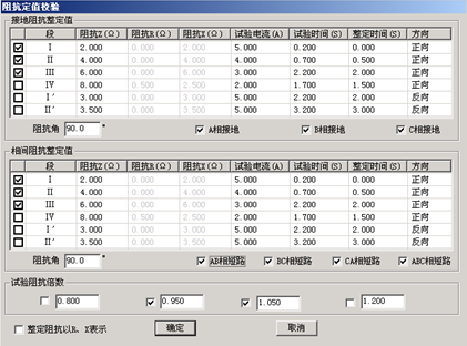 有四種試驗阻抗倍數(shù)供選擇,一般選0.95倍和1.05倍。0.95倍時,距離保護應(yīng)可靠動作,1.05倍時,距離保護應(yīng)可靠不動作。當微機繼電保護測試儀在這兩種倍數(shù)下保護動作不正確,請檢查0.8倍和1.2倍時保護的動作情況。短路阻抗 = 阻抗整定值×設(shè)定倍數(shù)。當然倍數(shù)值也可修改,以檢查保護在哪種倍數(shù)下動作正確。