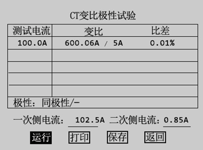 互感器綜合特性測(cè)試儀試驗(yàn)結(jié)束后,屏幕顯示出變比極性試驗(yàn)結(jié)果界面,如圖3.21所示。