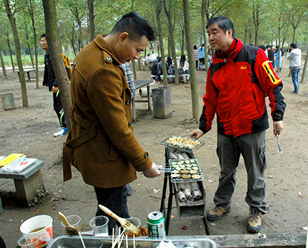 武漢的冬季已經(jīng)充滿寒意,特別是剛下過雨之后。但在農(nóng)耕年華卻是另外一番景象。幾組朝氣蓬勃充滿活力的團(tuán)隊(duì)正積極地準(zhǔn)備著燒烤的食材。大家積極配合,一起動(dòng)手,忙中透著輕松快樂的氣氛。